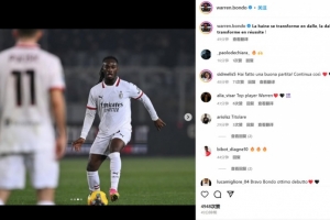 邦多在冬窗以1000万欧元从蒙扎加盟后,因伤休战至今,他也在本场比赛完成了米兰首秀。