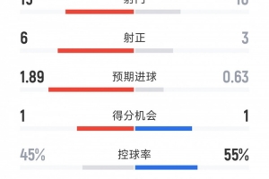 预期进球:1.89-0.62