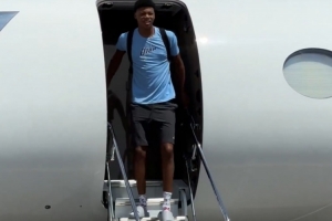 体育资讯6月29日讯 爵士官方晒出视频,球队今年的5号秀贝利终于来报道了,他乘坐球队的专机抵达了盐湖城。球队主教练威尔-哈迪也是亲自到场接机。官方配文写到:欢迎来到犹他州,开练吧!”
