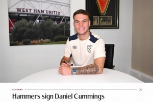 丹尼尔-卡明斯司职中锋,出自凯尔特人青训,他与西汉姆之间签下了一份长期合同,本周他将加入马克-罗布森执教的西汉姆U21进行季前备战。
