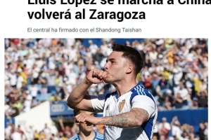 路易斯-洛佩斯这位中卫已与山东泰山签约,且不愿继续等待萨拉戈萨俱乐部可能开出的续约条件。路易斯-洛佩斯在萨拉戈萨的合同已于6月30日到期,而俱乐部始终未明确表态其去留问题。体育总监切马-因迪亚斯曾公开表示:“是否续约将取决于转会市场变化”。