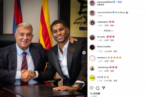 体育资讯7月24日讯 巴萨已经官宣引进曼联前锋拉什福德,后者也社媒晒照纪念。