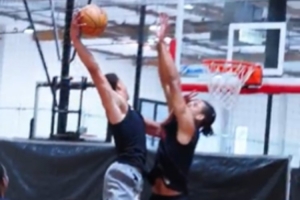 视频中,布莱恩特以一个战斧隔扣开场,非常炸裂。