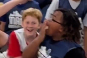 值得一提的是,在与马绍尔击完掌后,有几名小朋友舔了舔自己的手。