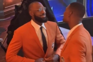 詹姆斯今日也来到了现场,并穿上了名人堂夹克!