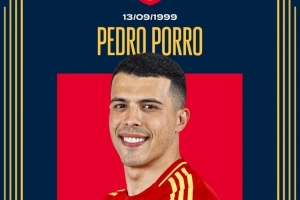 西班牙队官方社媒晒出佩德罗-波罗的生日海报,配文:“以两场胜利作为通往世界杯之路的开端,是否觉得这是波罗的完美生日礼物?祝我们的右后卫26岁生日快乐!”