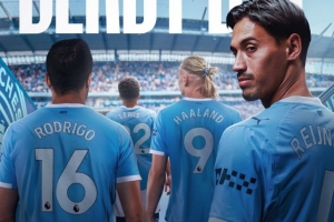 曼城官推也晒出海报为德比大战预热,海报中是赖因德斯、哈兰德、罗德里以及刘易斯即将步入球场的背影。