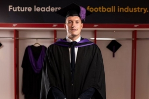 PFA官推晒出菲尔-琼斯的毕业照,并写道:“前曼联及英格兰后卫菲尔-琼斯昨日从PFA商学院毕业,祝贺菲尔-琼斯获得体育总监文凭。”
