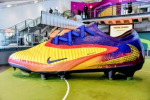 曼晚:哈兰德巨型球鞋亮相足球博物馆,长达6米打破世界纪录