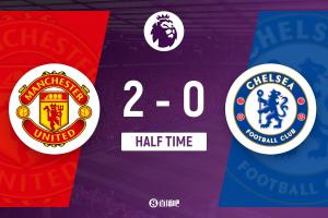 半场-曼联暂2-0切尔西 B费破门卡塞米罗建功+染红桑切斯5分钟直红