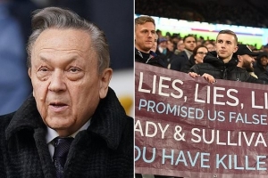 体育资讯9月21日讯 《每日邮报》报道,西汉姆联球迷在英超对阵水晶宫的赛前大规模抗议俱乐部老板。