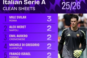 体育资讯9月26日讯 据Squawka的数据统计,在2025年的24场意甲联赛中,罗马门将斯维拉尔保持了14场零封,比其他任何门将至少多3场。