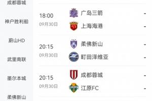 9月30日,海港客战广岛三箭,蓉城主场迎战江原FC。10月1日申花主场迎战蔚山HD。
