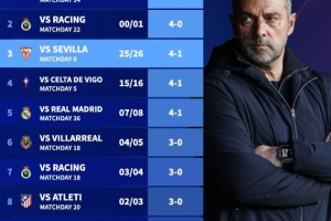 附巴萨本世纪西甲客场输球纪录: