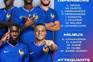 法国名单:姆巴佩领衔,坎特、萨利巴入选,登贝莱、琼阿梅尼伤缺