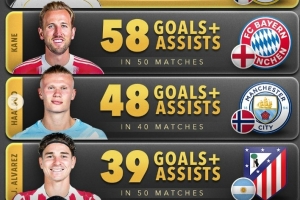 体育资讯11月10日讯 数据网站Score90盘点了2025年五大联赛前锋球员,在各项赛事(俱乐部+国家队)参与进球榜,其中姆巴佩62球居首,以下为具体情况(进球+助攻):