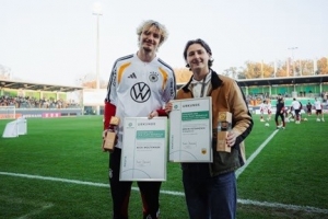 当地时间本周一,德国足协在官网发布公告,宣布德国国脚沃尔特马德获得2024-25赛季公平竞赛奖。同时获奖的还有SG Markgräflerland青年队主帅埃尔温-费塔霍维奇。在周一德国国家队在沃尔夫斯堡进行公开训练时,德国足协为沃尔特马德和埃尔温-费塔霍维奇颁奖。