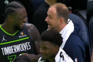 GIF-威少压哨三双,兰德尔和队友很开心!